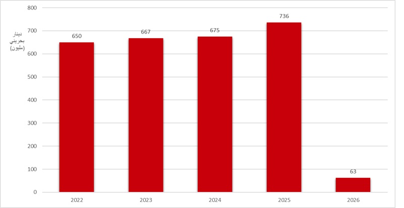 إجمالي مبالغ المعاملات المالية (بالدينار البحريني) 72,347,621 67,379,799 64,767,577